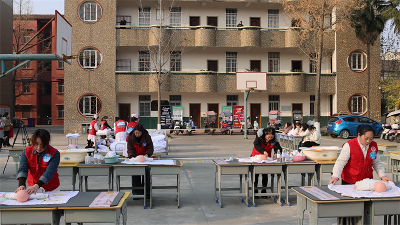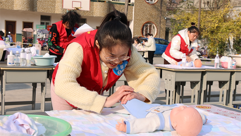 在育嬰項目比賽中,參賽選手為嬰兒洗澡、穿衣,展示衛(wèi)生保健護理、嬰兒嗆奶急救等技能。競賽中,選手們沉著冷靜、依規(guī)操作,展現(xiàn)出熟練的實踐操作技能。