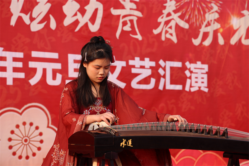匯演在舞蹈《盛裝》中拉開帷幕,舞者們用優(yōu)美的舞姿和華麗的服飾瞬間點燃了現(xiàn)場氣氛。薩克斯演奏的《西海情歌》悠揚動聽,其獨特的音色縈繞在校園上空,讓觀眾沉浸其中;浾Z串燒《月半小夜曲》《明年今日》《海闊天空》引發(fā)了一波又一波的合唱潮,熟悉的旋律喚起師生們心中的青春回憶。舞蹈串燒融合《青花》《特別的人》《倒數(shù)》等曲目,舞者們風格各異的舞蹈動作展示出了青春的活力與激情。古箏演奏如潺潺流水,讓現(xiàn)場觀眾感受到了傳統(tǒng)樂器的魅力。小品演出則憑借幽默的劇情和演員們出色的表演,引得臺下笑聲不斷、掌聲連連。