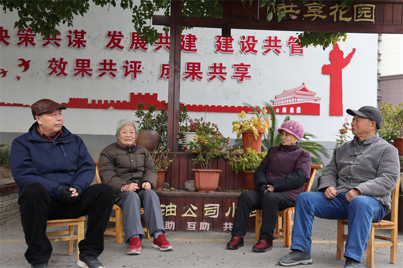 如今的石油公司小區(qū),映入眼簾的是干凈整潔的文化墻、姹紫嫣紅的共享花園、綠樹成蔭的院落。在活動室里聊天下棋、廣場健身的老人們悠閑地享受著幸福生活。