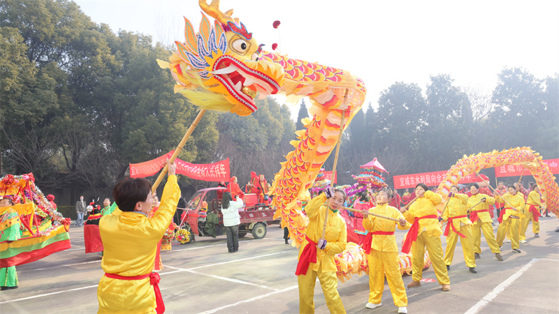 舞龍舞獅,象征著吉祥和力量,寄托著人民對(duì)新一年的美好祝愿;歡快的腰鼓,展現(xiàn)出楚都兒女的激情與活力;打連廂、旱船、蚌殼等傳統(tǒng)節(jié)目,生動(dòng)再現(xiàn)了古代勞動(dòng)人民的生產(chǎn)生活場(chǎng)景;趕犟驢、彩帶龍、麒麟送子、老背少等非遺節(jié)目,則因其濃郁的地方特色和對(duì)生活的美好寓意,受到廣大觀眾喜愛(ài)。