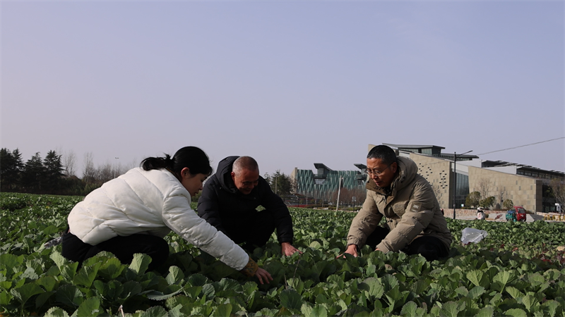 農(nóng)技專家查看油菜長(zhǎng)勢(shì)情況
