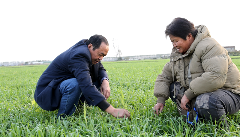 邵繼波查看小麥長(zhǎng)勢(shì)