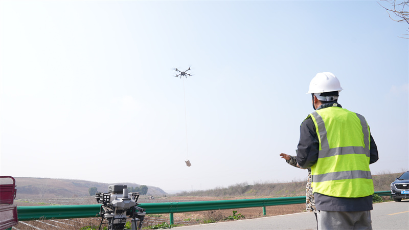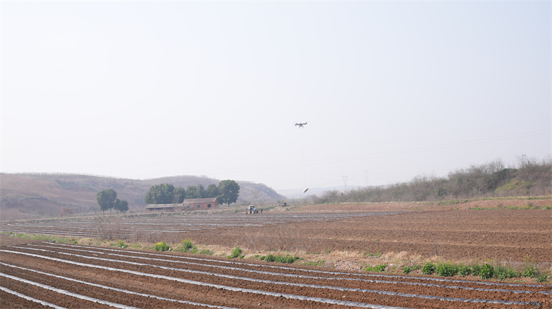 隨著農(nóng)用飛手的精準(zhǔn)操控,無人機(jī)僅用幾分鐘便將農(nóng)膜精準(zhǔn)投放到指定位置。宜城市農(nóng)業(yè)農(nóng)村局農(nóng)藝師鐘志平介紹,以往10名工人一天只能鋪設(shè)20畝農(nóng)膜,如今借助無人機(jī),一天即可完成全部作業(yè),效率提升了近20倍。這一技術(shù)的應(yīng)用,不僅大幅縮短了作業(yè)時(shí)間,還顯著降低了人工成本。
