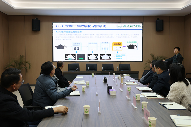 隨后,宜城市委組織部、市文旅局、易澤林工作室與湖北文理學院博士團隊開展座談交流。座談會上,雙方詳細介紹了各自發(fā)展概況和供需情況,宜城市介紹了市博物館數(shù)字化工程發(fā)展規(guī)劃、進展情況和技術(shù)、人才需求,湖北文理學院博士團隊展示了團隊在智能識別等領(lǐng)域的技術(shù)研究與應用場景,重點介紹了借助算法實現(xiàn)文物3D掃描與建模、AI識別與修復、虛擬展示與交互等核心技術(shù),對通過3D打印推動楚文化文創(chuàng)產(chǎn)品開發(fā)、培養(yǎng)輸送文物保護事業(yè)專業(yè)技術(shù)人才等關(guān)鍵議題進行深入探討交流。
