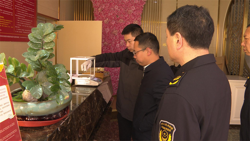檢查組對(duì)市區(qū)金銀首飾經(jīng)營(yíng)場(chǎng)所計(jì)量器具進(jìn)行檢查