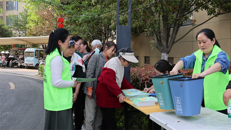“今天參加這個垃圾分類活動,領到了兩個垃圾桶和垃圾袋,我們今后會按照這個垃圾分類來進行正確規(guī)范投放,同時也會督促家里的小孩和我們一起正確投放!毙^(qū)居民吳婷婷說。