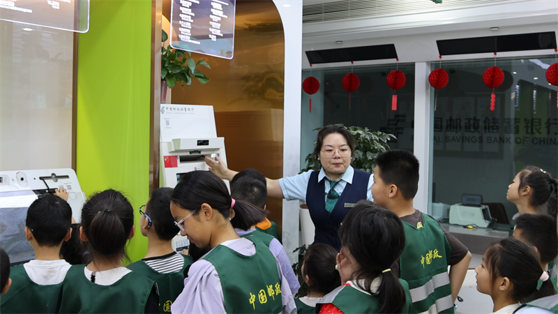 當(dāng)天上午,20多名新就業(yè)形態(tài)勞動(dòng)者子女在家長(zhǎng)的陪伴下來(lái)到中國(guó)郵政宜城市分公司,大家身著郵政工作服,化身“小小銀行家”,在工作人員的引導(dǎo)下參觀(guān)網(wǎng)點(diǎn),了解ATM機(jī)、點(diǎn)鈔機(jī)等設(shè)備使用,并模擬存錢(qián)、取錢(qián)流程,在實(shí)踐中了解金融知識(shí)。在財(cái)富中心,郵政發(fā)展歷程和特色服務(wù)展陳進(jìn)一步激發(fā)了孩子們的好奇心,郵筒、電話(huà)、快遞自行車(chē)等打卡點(diǎn)更增添了活動(dòng)的趣味性。