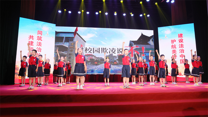 演出在氣勢恢宏的舞蹈《大展宏圖》中拉開序幕。震撼人心的情景劇《向校園欺凌說“不”》、悠揚的合唱《煙火氣的民法典》、節(jié)奏明快的快板舞《法院鐵軍譜新篇》、聲情并茂的朗誦《法之光,照亮歸途》、幽默詼諧的小品《違建風波》、展現(xiàn)家國情懷的獨唱 《祖國你好》等節(jié)目輪番上演,巧妙地將法治元素融入文藝節(jié)目中,使大家在藝術(shù)熏陶中深化法治認知,實現(xiàn)“潤物無聲”的普法效果。