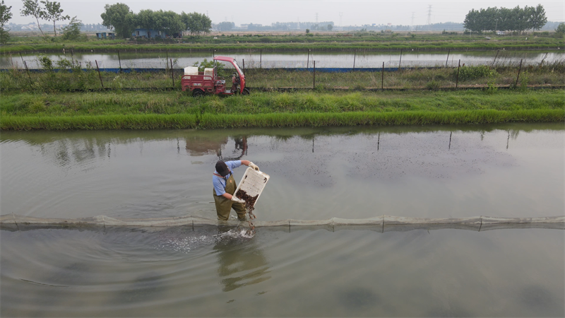 “今天我們投放了第二批蝦苗,大概6月底也就是插秧之前,這批小龍蝦就可以上市銷售。等把秧苗種下后,還可以再養(yǎng)殖第三批稻田蝦。”養(yǎng)殖戶許富明說(shuō)。