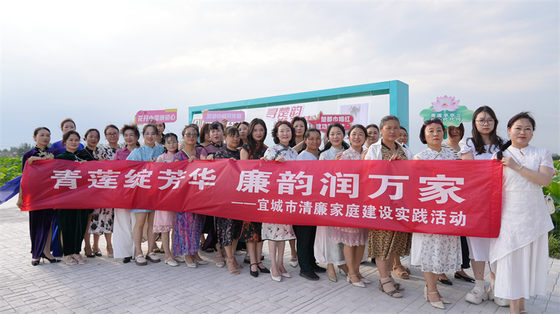 在荷花基地,層層荷葉間綴滿姿態(tài)各異的荷花,美不勝收。蓮花,出淤泥而不染;顒(dòng)在宣讀《家庭助廉倡議書》中拉開序幕,呼吁大家以蓮花的高潔品質(zhì)為榜樣,積極投身清廉家庭建設(shè),用清廉守護(hù)家庭的幸福與安寧,為建設(shè)廉潔社會(huì)、共創(chuàng)美好未來貢獻(xiàn)巾幗力量。隨后大家齊唱《花開中國》,用飽滿的熱情、真摯的歌聲凝聚奮進(jìn)力量,激勵(lì)現(xiàn)場更多女性游客在新時(shí)代綻放風(fēng)采。