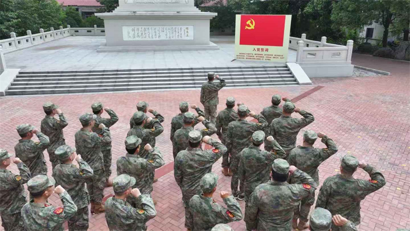 活動(dòng)現(xiàn)場,在莊嚴(yán)肅穆的革命烈士紀(jì)念碑前,宜城市人武部機(jī)關(guān)黨支部黨員干部與專武干部整齊列隊(duì),面向鮮紅的黨旗,共同高舉右拳,重溫入黨誓詞!拔抑驹讣尤胫袊伯a(chǎn)黨……隨時(shí)準(zhǔn)備為黨和人民犧牲一切,永不叛黨!辩H鏘有力的誓言回蕩在陵園上空,進(jìn)一步堅(jiān)定黨員干部愛黨忠黨、矢志不渝跟黨走的信念,讓入黨初心更加明晰。