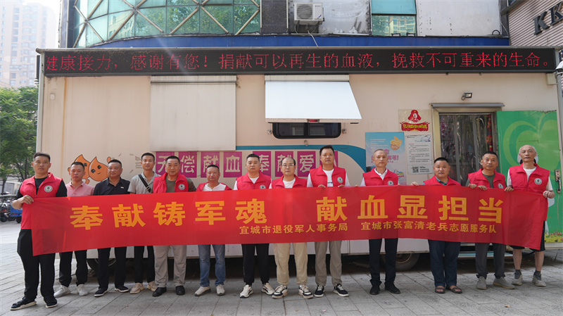 本網(wǎng)訊記者鄔玲玲 實習(xí)生閔慧嫻 通訊員楊貴報道:7月15日,宜城市退役軍人事務(wù)局組織開展“奉獻(xiàn)鑄軍魂 獻(xiàn)血顯擔(dān)當(dāng)”無償獻(xiàn)血活動。宜城市張富清老兵志愿服務(wù)隊29名隊員積極響應(yīng),以熱血詮釋責(zé)任擔(dān)當(dāng),以實際行動傳遞希望,奉獻(xiàn)愛心。