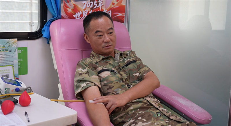 “我已經(jīng)獻(xiàn)血10多次了,每年都獻(xiàn)一兩次。作為一名退役軍人,參與獻(xiàn)血就是踐行‘退役不褪色’的誓言。希望用我們的實際行動,帶動更多的人加入無償獻(xiàn)血行列,用熱血守護(hù)生命,傳遞軍民魚水情!币顺鞘袕埜磺謇媳驹阜⻊(wù)隊隊員徐剛說。