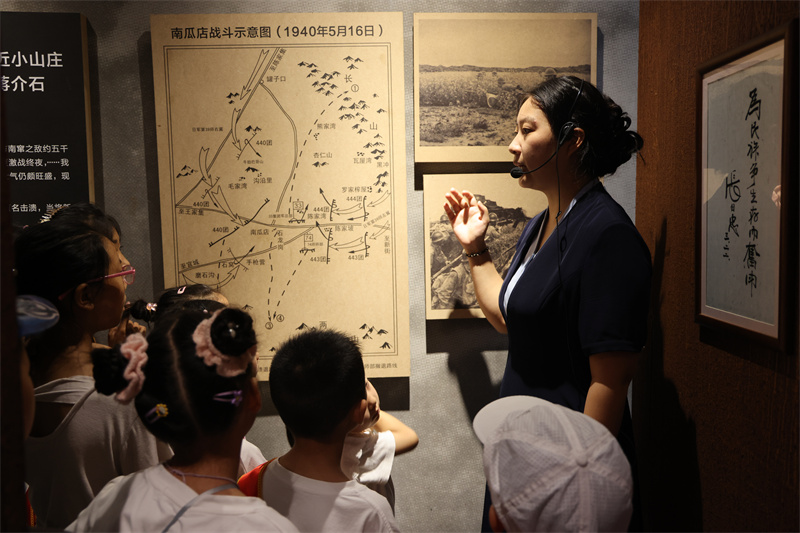 在張自忠將軍紀念館內(nèi),講解員詳細地為學(xué)生們講述張自忠將軍生平事跡,特別是他在抗日戰(zhàn)爭中展現(xiàn)出的英勇無畏和愛國精神。通過一件件珍貴的文物、一幅幅生動的歷史圖片以及多媒體展示,孩子們仿佛穿越時空,真切感受到那段波瀾壯闊的崢嶸歲月。