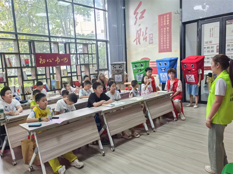 活動(dòng)現(xiàn)場(chǎng),宣傳員創(chuàng)新采用"真人版分類垃圾桶"的形式,生動(dòng)形象地向孩子們講解垃圾分類知識(shí)。“我知道!礦泉水瓶要放進(jìn)藍(lán)色可回收物桶!”在互動(dòng)問答環(huán)節(jié),小朋友們踴躍舉手回答。同時(shí)通過情景模擬、實(shí)物展示等方式,詳細(xì)講解四類垃圾的區(qū)別和正確投放方法,讓孩子們?cè)谳p松愉快的氛圍中學(xué)習(xí)并鞏固知識(shí)。還向托管班贈(zèng)送《垃圾分類小手冊(cè)》和環(huán)保文具袋,鼓勵(lì)孩子們爭(zhēng)當(dāng)"家庭環(huán)保監(jiān)督員"。