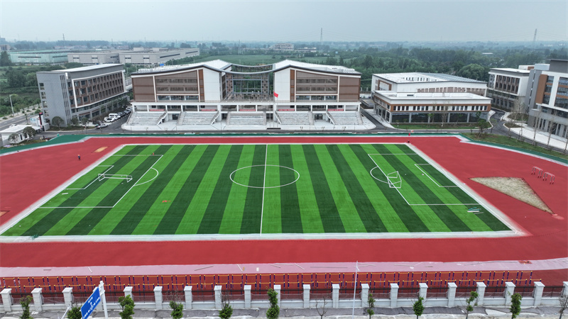 “運動場施工嚴(yán)格按照施工圖紙及國家規(guī)范要求!滨庺~湖中學(xué)項目部負(fù)責(zé)人陳剛介紹,足球場選用進(jìn)口人工草坪,跑道采用高品質(zhì)專業(yè)塑膠材料。施工全部采用機(jī)械化攤鋪,平整度符合國家運動場標(biāo)準(zhǔn)。