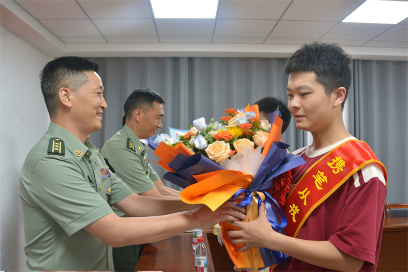 市人武部領(lǐng)導(dǎo)為兩位軍校新生送鮮花