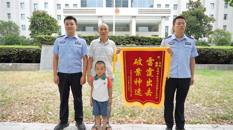本網(wǎng)訊記者李明磊通訊員杜心怡報道:8月6日,市民陳培強將一面印有“雷霆出擊 破案神速”的錦旗送到辦案民警手中,表達由衷的感激之情。這面錦旗背后,是一起發(fā)生在8月2日凌晨、不到24小時告破的跨省盜竊案。