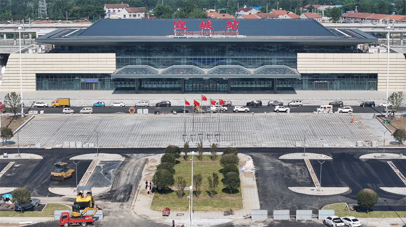 8月18日,記者在襄荊高鐵宜城站綜合客運樞紐建設(shè)現(xiàn)場看到,客運換乘中心和公交換乘中心的主體建設(shè)、門窗安裝已完成,站前廣場高桿燈安裝、大理石鋪貼等已全部完成;大型攤鋪機、壓路機等大型機械來回穿梭,配合著人工進行最后的土地平整和綠化景觀打造,施工人員正在進行廣場內(nèi)綠化樹木栽植、草皮鋪設(shè)以及道路瀝青攤鋪,現(xiàn)場一派繁忙景象。