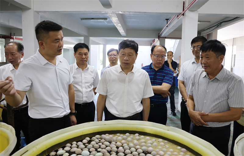 在湖北楚大鴨業(yè),張維國一行參觀了企業(yè)文化展廳和生產(chǎn)車間,詳細(xì)了解企業(yè)的生產(chǎn)流程、產(chǎn)品特色以及市場銷售情況。他鼓勵企業(yè)要繼續(xù)深挖楚文化內(nèi)涵,將楚文化元素融入產(chǎn)品設(shè)計和品牌建設(shè)中,提升產(chǎn)品的文化附加值和市場競爭力。