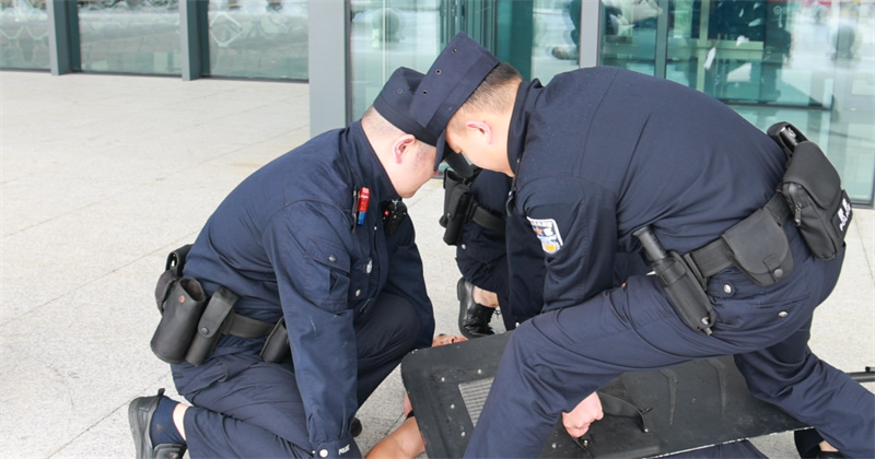 演練模擬兩名攜帶管制刀具人員在進(jìn)站時與一名出站旅客發(fā)生沖突,并使用匕首將該旅客刺傷。接到群眾報警后,站內(nèi)安保人員迅速利用防爆器械進(jìn)行先期處置,與“暴徒”展開周旋,有效阻止其繼續(xù)行兇和向內(nèi)侵入。