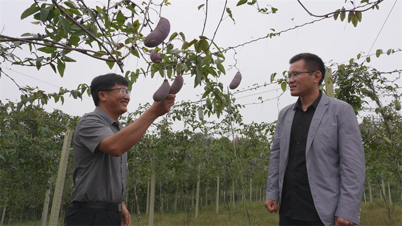 鎮(zhèn)、村干部查看八月瓜種植基地