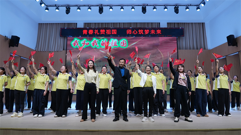 活動(dòng)最后,全體教師揮舞小紅旗深情演唱《我和我的祖國(guó)》把活動(dòng)推向高潮,大家用飄揚(yáng)的紅旗和悠揚(yáng)的歌聲,表達(dá)赤誠(chéng)的中國(guó)心和拳拳的中國(guó)情。