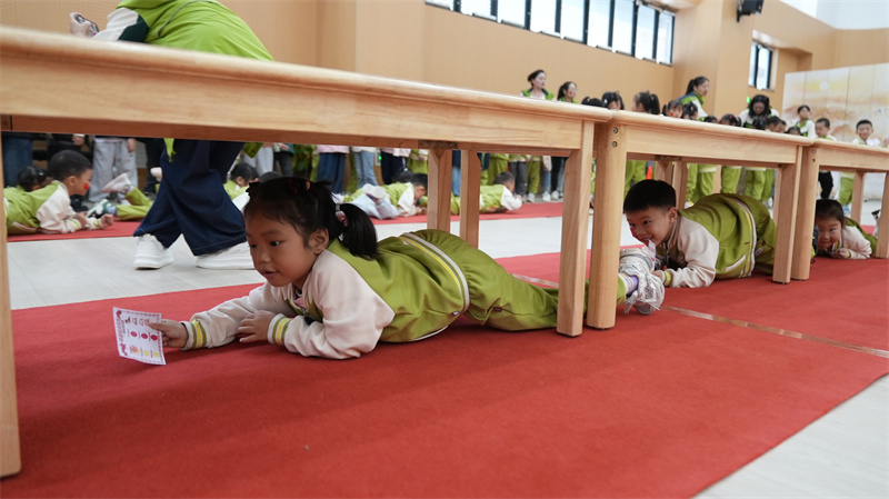 最引人入勝的是“小小紅軍”體驗活動。孩子們化身小戰(zhàn)士,滾過“青草地”、鉆過“小山洞”、穿過“鐵絲網(wǎng)”、跨越障礙、翻越“矮墻”、勇闖“雷區(qū)”,在模擬長征情境中親身體驗革命先輩艱苦奮斗的歷程,感受不屈不撓的長征精神。