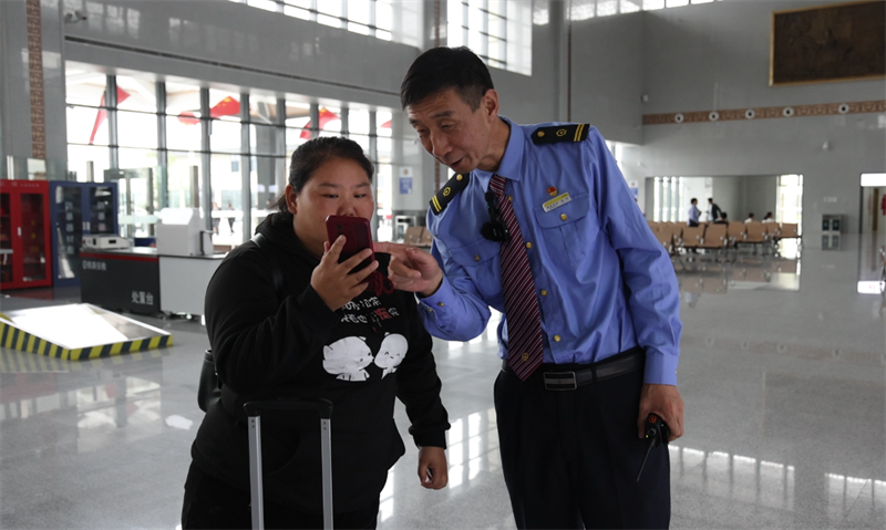 國慶期間,客流峰值一波接一波,李琦的腳步幾乎未曾停歇。從進站口到出站口,從候車廳到站臺,他反復(fù)巡查流線,督導(dǎo)服務(wù)設(shè)施運行。除了統(tǒng)籌全局,他也注重細節(jié)把控,隨時抽查工作人員的業(yè)務(wù)熟練度。