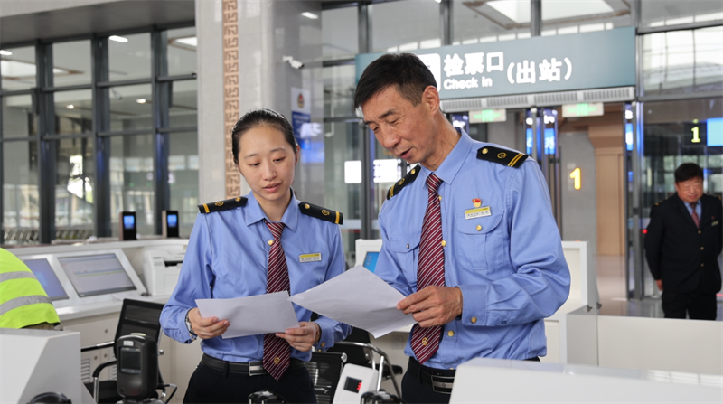宜城站安監(jiān)卡區(qū)負責人鮑麗莎說:“站長每天都會過來代班,檢查我們的工作狀態(tài)和業(yè)務(wù)技能?土鞲叻鍟r,也會加派人手,確保進站旅客不擁堵!