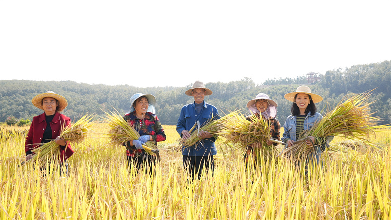 楊鵬11組村民劉興榮看著收割的稻谷,高興地說:“以往我們種普通雜交稻的一畝田產(chǎn)值只在1,000多塊錢,現(xiàn)在的有機(jī)香稻,產(chǎn)值在5,000塊錢左右,收入在原來的基礎(chǔ)上翻了一番多!