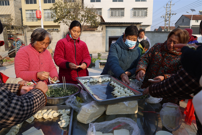 “老百姓自發(fā)的搬椅子、搬凳子、然后大家就一起來包餃子,包括鍋、灶都是村民們組織起來的!毙『渔(zhèn)黃集村婦聯(lián)主席黃雨新說,活動得到全體村民的積極響應(yīng)。