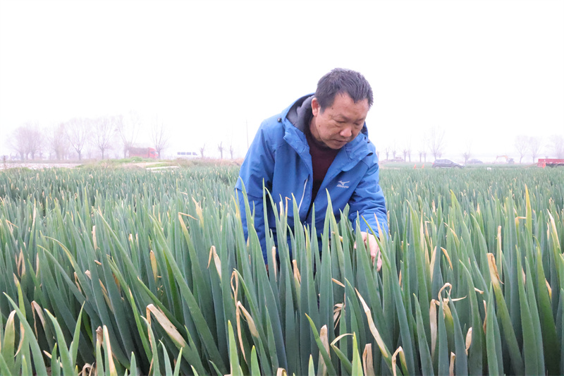 該基地采用“小麥-大蔥”輪作模式,盡管去年種植的蔥受到了天氣影響,但仍然實現(xiàn)了每畝萬斤的產(chǎn)量,市場價九毛錢一斤,一畝實現(xiàn)利潤7、8000千元。