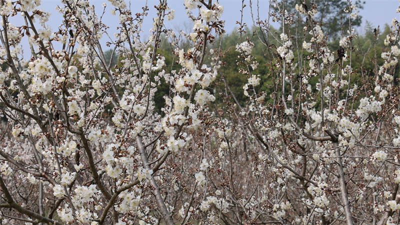 3月11日,記者在劉猴鎮(zhèn)黨畈村看到,漫山遍野的櫻桃花迎春綻放,潔白如雪,清香撲鼻。游客們漫步花間,或駐足觀賞,或拍照留念,盡情享受春日的美好時光。