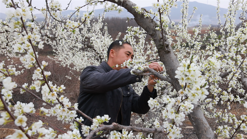 雙山村村民呂靖說:“我種了50畝的李子,為了能結(jié)優(yōu)質(zhì)的果子,現(xiàn)在正在進行疏花。估計一畝地能產(chǎn)2500斤左右的果子,能有個30多萬的收入!