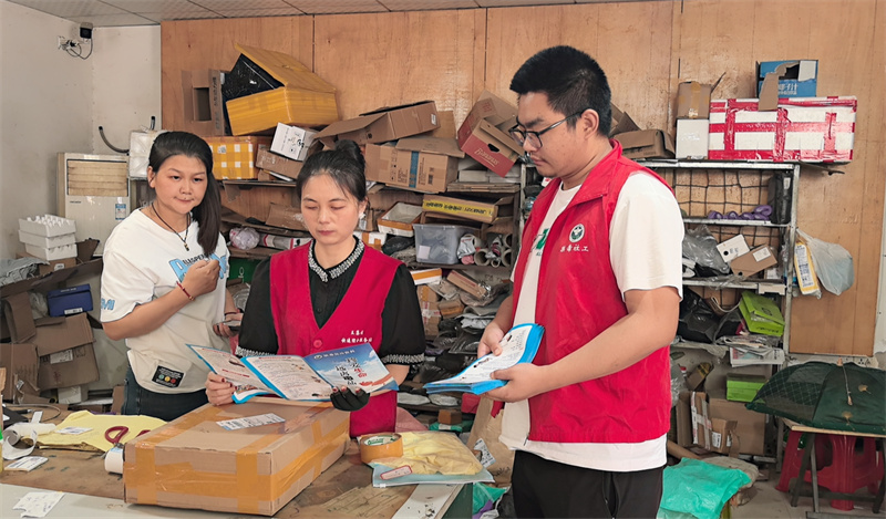 禁毒社工在快遞網(wǎng)點宣傳禁毒