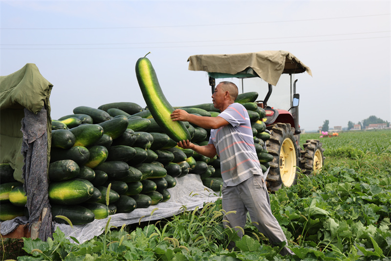 盡管夏日炎炎,但比不過肖志兵心中那份因豐收而燃起的喜悅之情!叭ツ曷犝f種植冬瓜的效益不錯(cuò),所以我今年種了點(diǎn)冬瓜,目前看來收成還相當(dāng)可觀!毙ぶ颈贿呏笓]著裝車,一邊高興地介紹。