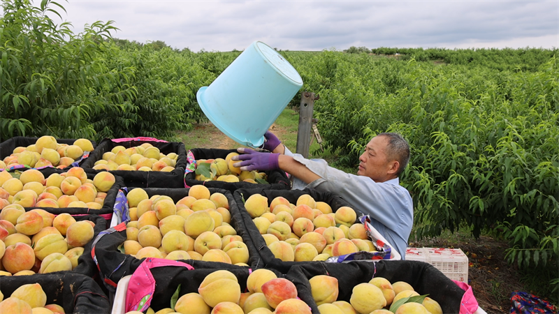 6月18日,在流水鎮(zhèn)劉臺村村民鄧永華的桃園里,一顆顆圓潤飽滿的黃桃壓彎了枝頭,空氣中彌漫著誘人的果香。由于桃樹樹齡尚小,鄧永華的30畝桃林總產(chǎn)量約3萬多斤,加之市場行情波動較大,如何快速銷售、保障收益成了他最大的擔(dān)憂。