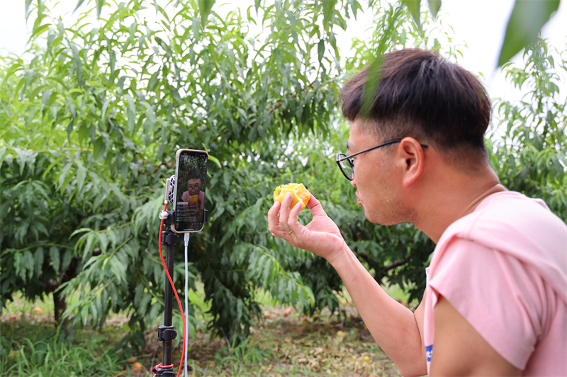 本網(wǎng)訊記者謝子恒通訊員鄭世杰 肖銀橋報道:連日來,流水鎮(zhèn)劉臺村種植的金鳳黃桃迎來收獲季,累累碩果掛滿枝頭。然而,面對即將到來的雨水天氣和集中上市的壓力,如何快速銷售、保障收益成為果農(nóng)的心頭之急。關(guān)鍵時刻,電商直播為農(nóng)戶解決了銷售難題。