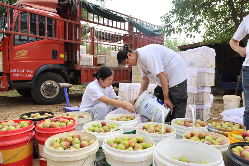 豐收的喜悅不僅洋溢在果農臉上,也傳遞到雙山村的臨時交易點。一筐筐剛下枝頭的新鮮李子,正被迅速分揀、裝箱,等待發(fā)往全國各地。