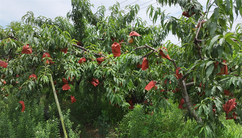 南營街道金山村二組村民何強說:“我種了六七畝黃桃,今年預計收入4萬元!