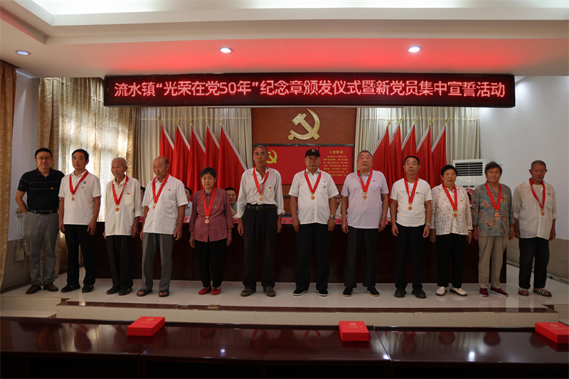 本網(wǎng)訊記者謝子恒 通訊員張杰報道:7月1日,流水鎮(zhèn)黨委以“薪火相傳五十載 初心如磐啟新程”為主題,組織開展“光榮在黨50年”紀念章頒發(fā)暨新黨員入黨宣誓活動。
