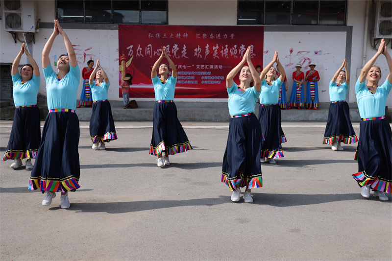 開(kāi)場(chǎng)舞《沒(méi)有共產(chǎn)黨就沒(méi)有新中國(guó)》瞬間點(diǎn)燃現(xiàn)場(chǎng)氣氛,藏族舞蹈《生日歌》、雙人舞《今天是你的生日,我的中國(guó)》飽含家國(guó)深情,歌曲《珊瑚頌》等將紅色經(jīng)典旋律唱響。