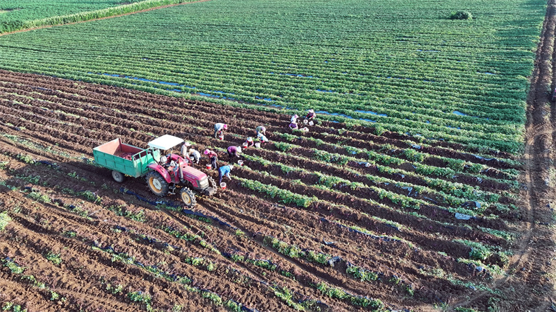7月9日,在板橋店鎮(zhèn)王臺(tái)村一處種植基地,在農(nóng)機(jī)的助力下,一行行紫薯破土而出擺滿田間地頭,個(gè)個(gè)體態(tài)飽滿、顏色鮮亮,村民們分揀、裝袋,各司其職、分工有序,現(xiàn)場(chǎng)一派繁忙景象。