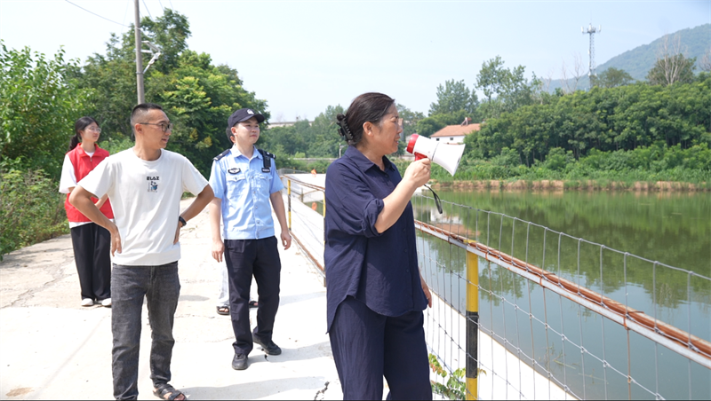 與此同時(shí),廖河村創(chuàng)新構(gòu)建的“村干部+組干部+志愿者+派出所民警”“四位一體”防護(hù)網(wǎng)正高效運(yùn)轉(zhuǎn)。巡查隊(duì)伍每日對轄區(qū)內(nèi)的堰塘、溝渠進(jìn)行動(dòng)態(tài)巡邏,及時(shí)勸離嬉水人員,并在危險(xiǎn)水域更新警示標(biāo)識、補(bǔ)充救生圈與長竹竿等應(yīng)急設(shè)備。該村還組織村干部和村民通過應(yīng)急救援演練的方式,讓村民“真實(shí)”體驗(yàn)?zāi)缢仍R,確保大家能夠“學(xué)到真本事”,遇到溺水事故能夠正確施救。學(xué)生劉星雨說:“我今天學(xué)到很多防溺水知識,學(xué)會(huì)如何拋游泳圈、如何用救生桿救近處的溺水者。以前我不知道該如何應(yīng)對這種情況,現(xiàn)在通過專業(yè)學(xué)習(xí),心里也有底了!
