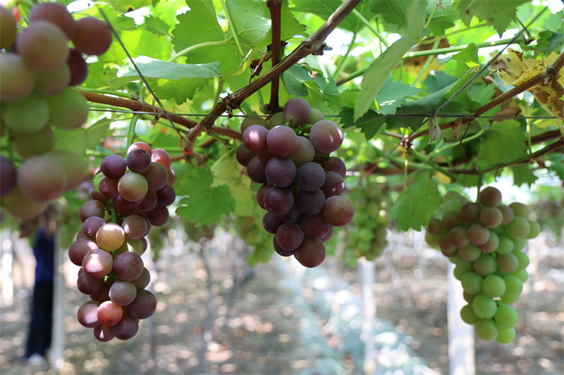 "目前葡萄長(zhǎng)勢(shì)良好,預(yù)計(jì)畝產(chǎn)可達(dá)3000多斤。按照往年每斤5-6元的收購(gòu)價(jià),畝均收入約1.5萬(wàn)元。"劉光寶介紹。今年,長(zhǎng)期的高溫天氣給葡萄種植帶來(lái)挑戰(zhàn),部分葡萄出現(xiàn)“燒葉”問(wèn)題。憑借多年的種植經(jīng)驗(yàn)與科學(xué)管理方法,劉光寶帶領(lǐng)團(tuán)隊(duì)積極應(yīng)對(duì),每天組織人力修剪受損果實(shí),確保葡萄品質(zhì)穩(wěn)定。