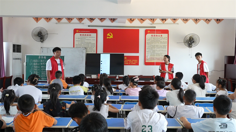 每年暑期前,襄江村就會(huì)提前在村民小組微信群發(fā)布愛(ài)心托管班報(bào)名信息,并招募本村和附近村莊的高中生、大學(xué)生志愿者。志愿者會(huì)根據(jù)托管班孩子們的年齡、人數(shù)安排教學(xué)內(nèi)容,讓原本被高溫困住的暑假,因?yàn)檫@些豐富多彩的課程變得生動(dòng)起來(lái)。