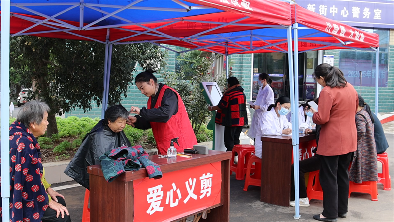 在公益集市現(xiàn)場(chǎng),醫(yī)務(wù)人員為居民進(jìn)行免費(fèi)義診,讓轄區(qū)居民在家門口就能享受到專業(yè)的醫(yī)療服務(wù)。現(xiàn)場(chǎng)還設(shè)有免費(fèi)理發(fā)、反電詐知識(shí)宣傳、政策咨詢、免費(fèi)拍照等服務(wù)項(xiàng)目,受到一致好評(píng)。