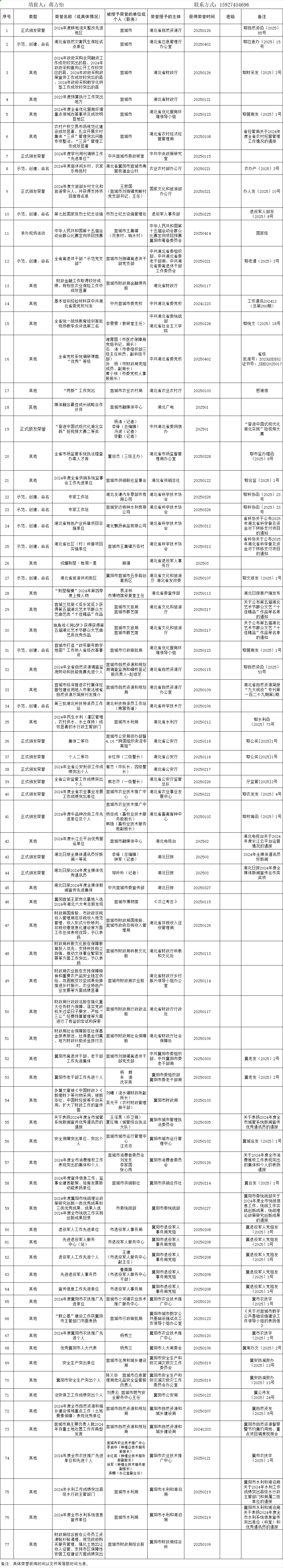 宜城市襄陽(yáng)市級(jí)以上重要榮譽(yù)統(tǒng)計(jì)表